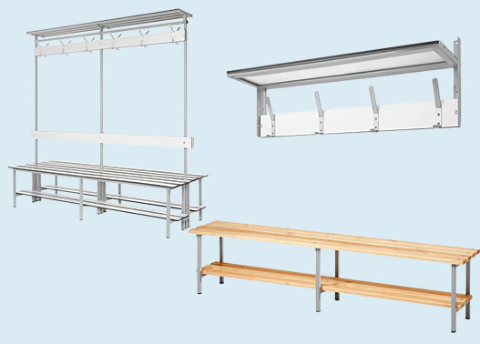 Bancos de vestuario y percheros
