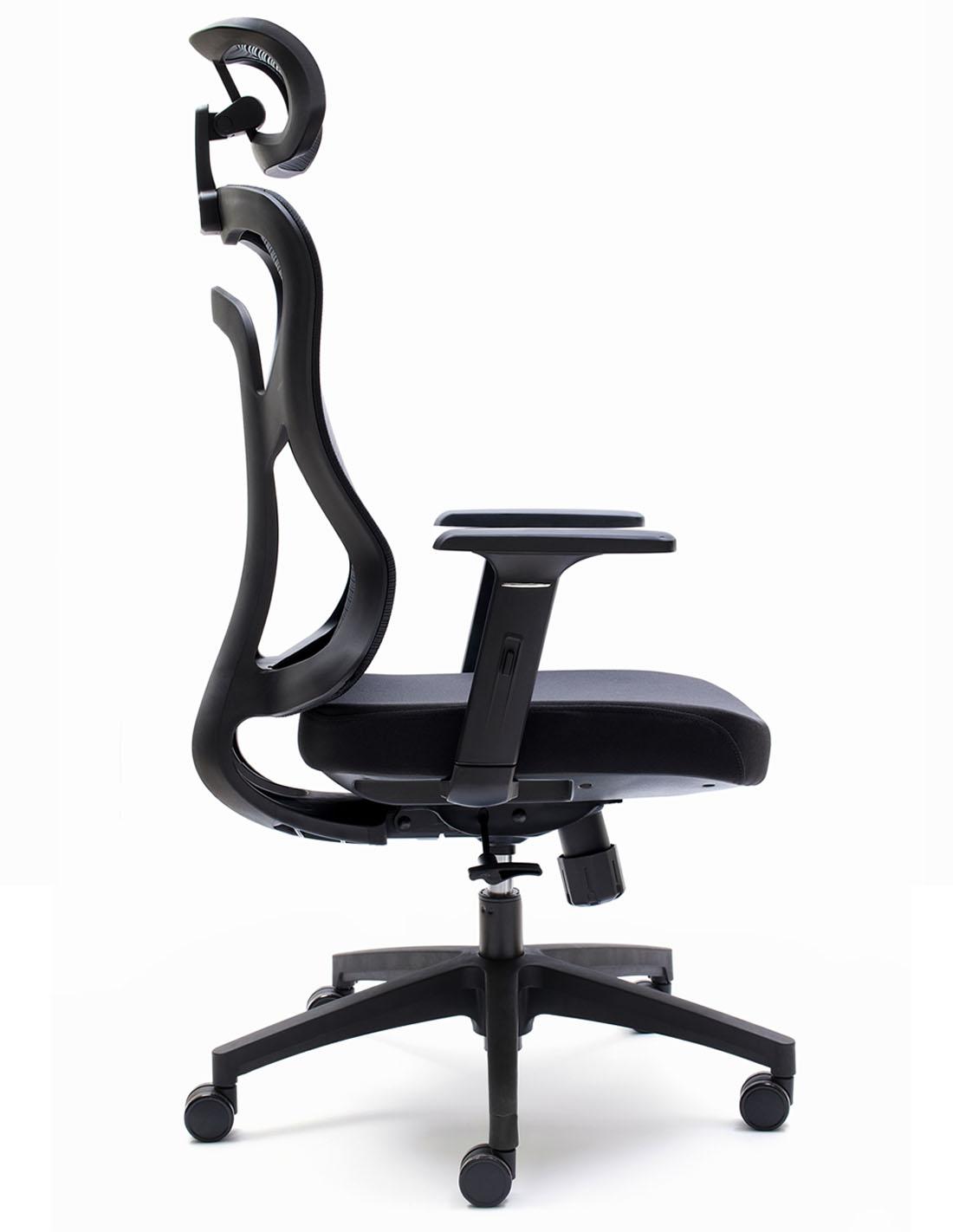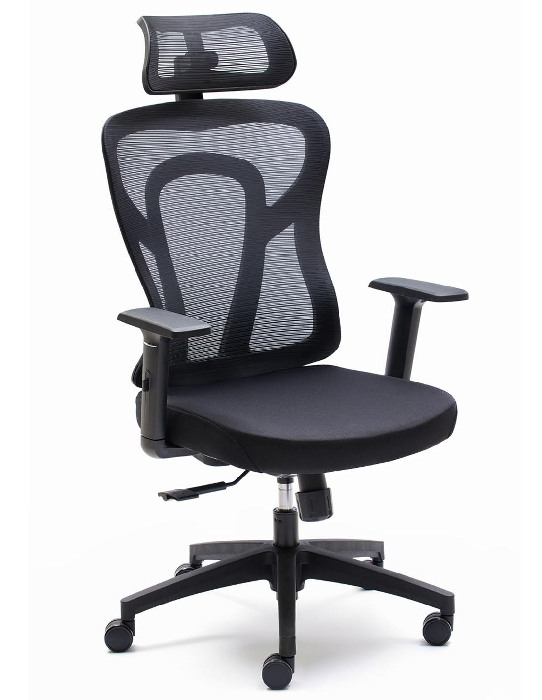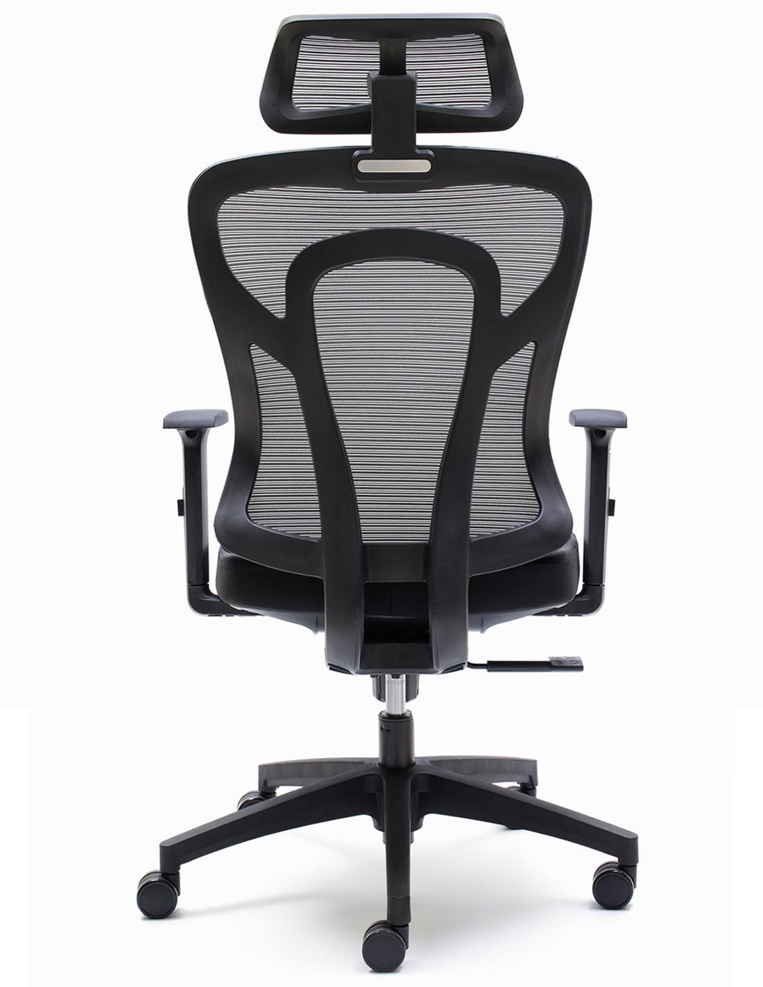 La curvatura lumbar del respaldo y su malla ultra resistente se adaptan perfectamente al contorno del usuario.