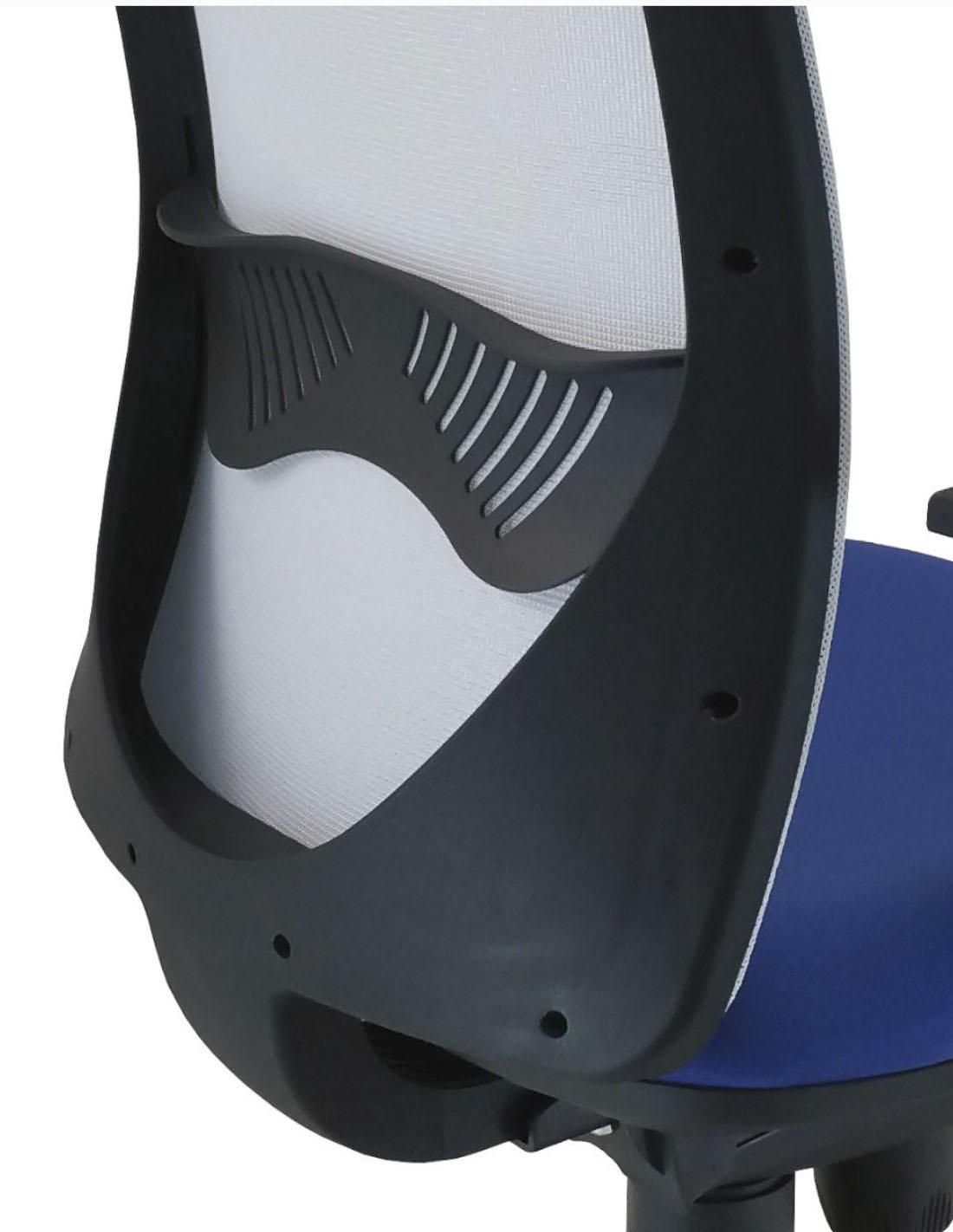 Estructura de polipropileno, con malla ignífuga ultra-resistente acrílica disponible en 7 colores (negro, blanco, rojo , azul , gris, naranja o beige..). Transpirable y ergonómicamente adaptable. Incluye apoyo lumbar regulable en altura.
