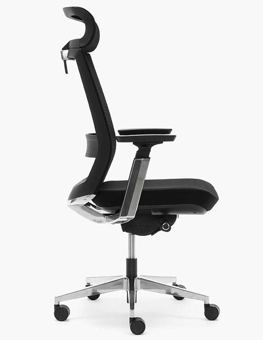 - Brazos: Fabricados de acero cromado y poliamida con apoyabrazos blando. Regulables en altura, giro y profundidad (3D).