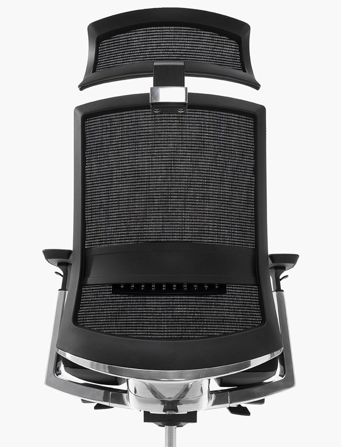 - Cabecero: integrado en respaldo. Tapizado en malla a juego con el respaldo. Regulable en altura.